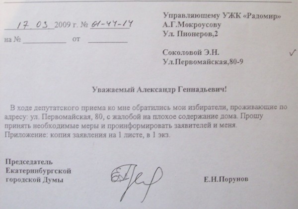 сегодняшний день жильцы подписывают новое заявление на имя дирекции УЖК