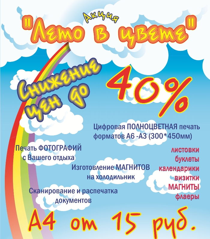 Цифровая ПОЛНОЦВЕТНАЯ печать форматов А6 - А3 (300*450мм)