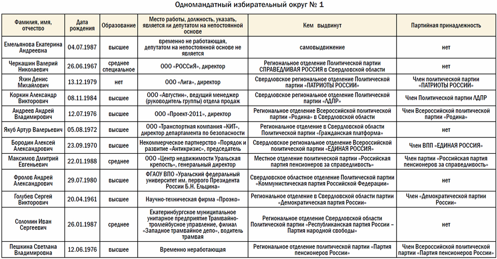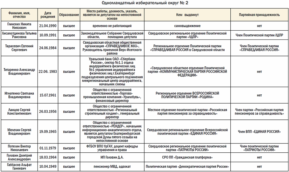 Отметим, что ниже представлен неполный список. Дополнительно мы будем выбирать депутата по партийным спискам. Каждая партия выдвинула на выборы трех своих кандидатов.