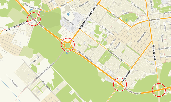 Далее в очереди развязка на пересечении Объездной и улицы Серафимы Дерябиной. По данному объекту специалисты еще не пришли к окончательному решению относительно наиболее оптимального варианта: какая из дорог должна пройти в верхнем уровне. Замглавы Екатеринбурга по вопросам благоустройства, транспорта и экологии Евгений Липович поставил задачу в течение недели определиться в этом вопросе с учетом прогнозов по изменению транспортных потоков и загруженности магистралей.