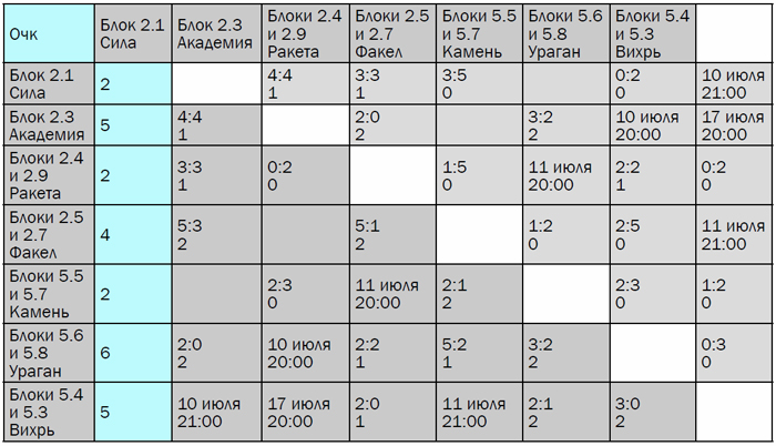 Даже погодные условия не помешали на этой неделе пройти турниру по волейболу. В этот раз на поле встретились команды: Академия, Ракета, Факел, Камень, Ураган и Сила.