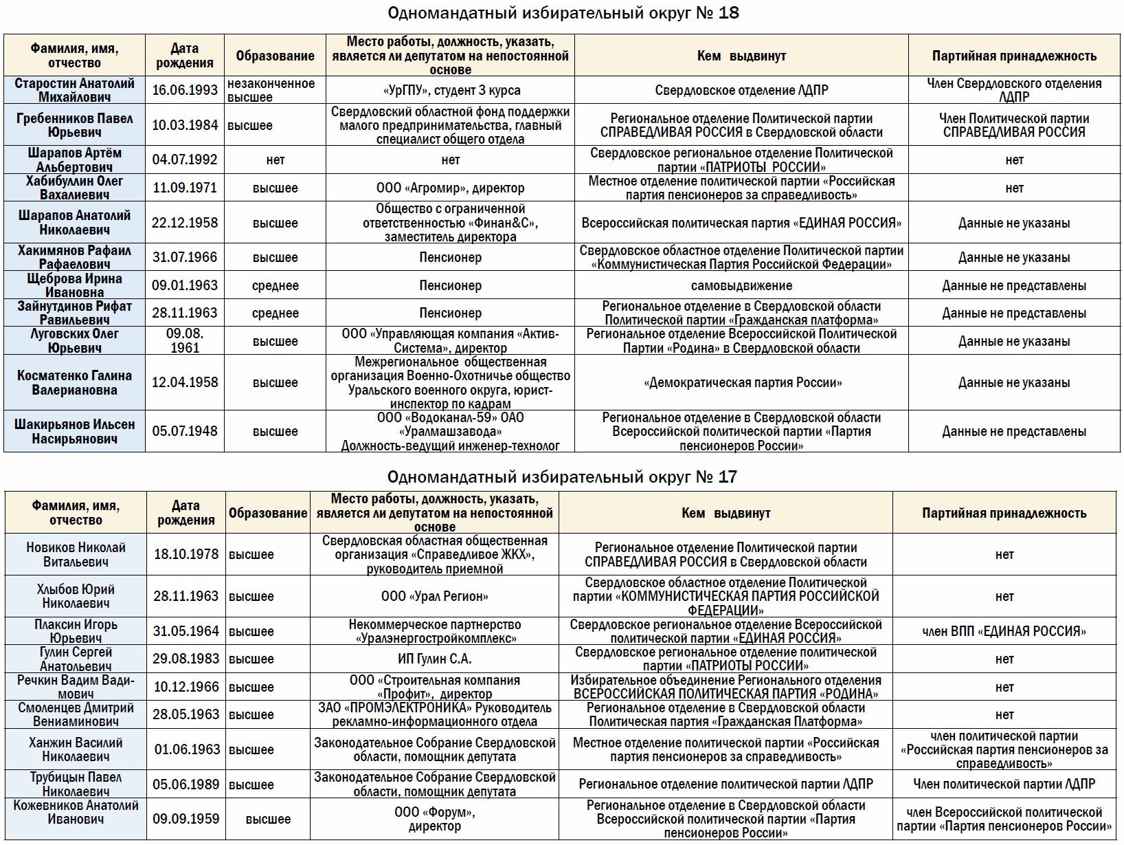 Отметим, что ниже представлен неполный список. Дополнительно мы будем выбирать депутата по партийным спискам. Каждая партия выдвинула на выборы трех своих кандидатов.