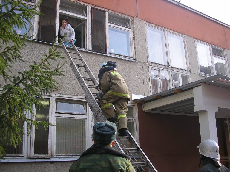 Сигнал тревоги прервал занятие. Воспитатели и дети организованно, со знанием дела (подобные учения проводятся дважды в год), эвакуировались из здания по безопасным путям – наружным пожарным лестницам. А вот пятилетний Ваня с воспитательницей были спасены со второго этажа пожарными по другой уже, трехколенной лестнице. Детскому восторгу не было предела: настоящие огнеборцы, настоящие пожарные машины – что может быть интереснее!